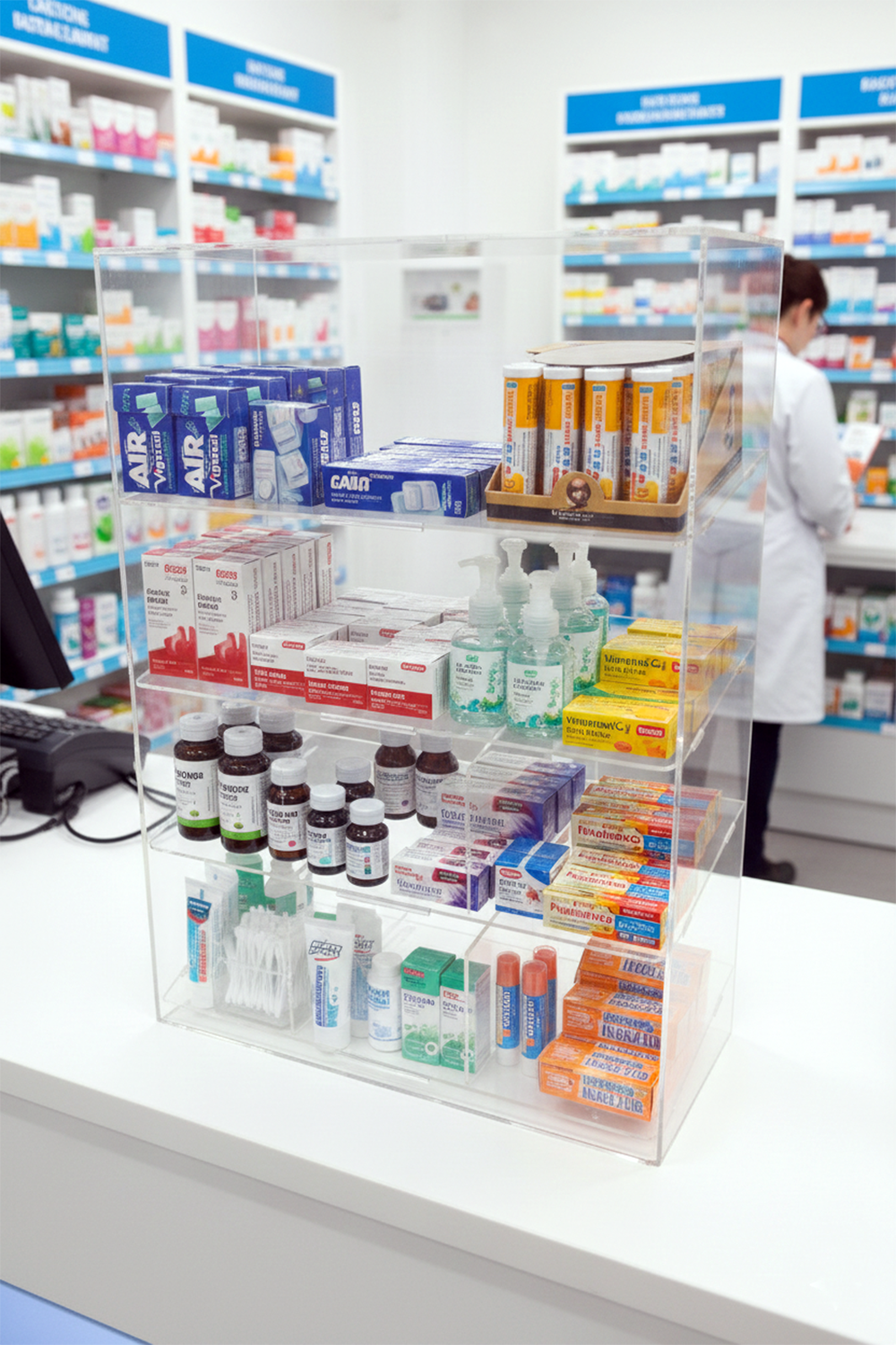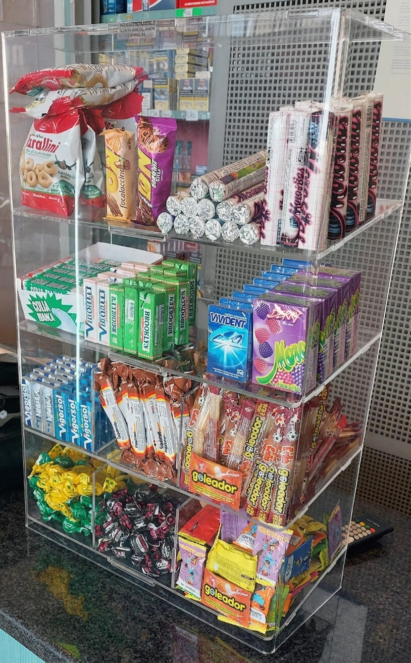 Our plexiglass display stand is the perfect solution for tobacco shops, bars, pharmacies, and retail businesses looking to showcase small products in an elegant and organized manner. Thanks to its transparent design and robust structure, it ensures maximum product visibility while simultaneously protecting your merchandise from theft.